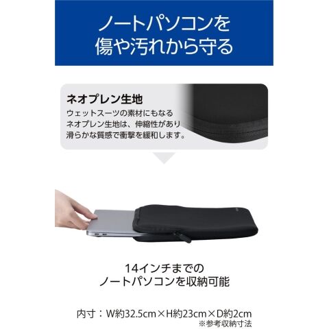 柔らかく伸縮性に優れたストレッチ素材を使用し、ノートパソコンを傷や汚れから守るインナーバッグです。
