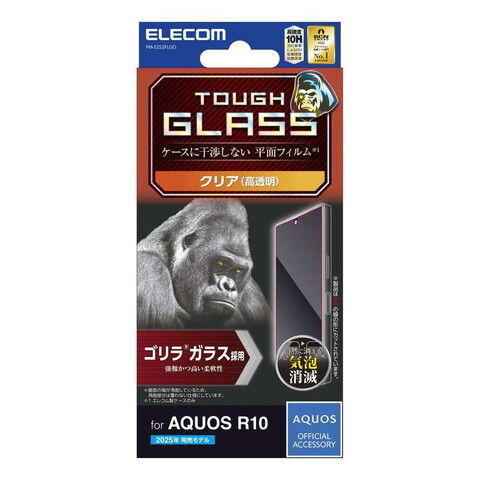 エレコム AQUOS R10 (SH-51F)用 ガラスフィルム 高透明 強化ガラス Gorilla(R) 薄型 表面硬度10H 指紋防止 気泡防止 飛散防止 PM-S252FLGO 【返品種別A】