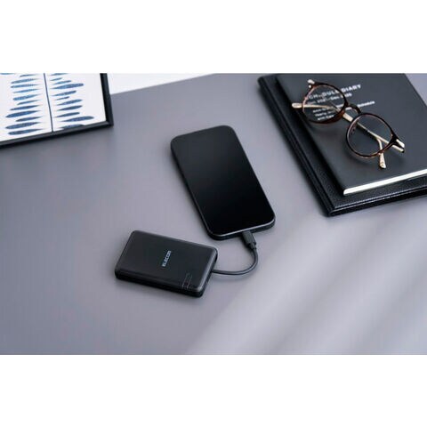 エレコム USB-Cケーブル一体型 モバイルバッテリー USB-C×1ポート 5000mAh 12W(ブラック) DE-C62-5000BK 【返品種別A】