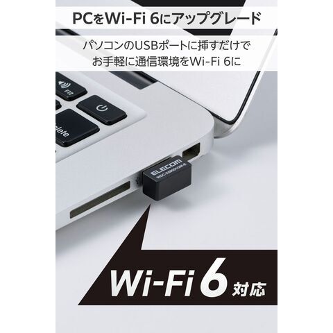 エレコム|ELECOM WiFi 子機 無線LAN アダプター 600Mbps USB 2.0 Wi-Fi6 超小型 Windows 11/10対応 ビームフォーミング WPA3(ブラック) WDC-X600DU2M-B 【返品種別B】