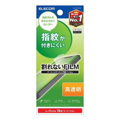 エレコム iPhone 16e / 14 / 13 / 13 Pro用 フィルム 高透明 抗菌 ハードコート 指紋防止 気泡防止 PM-A25SFLFGN 【返品種別A】