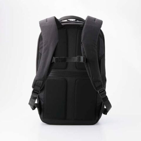 バックパックを正面から見た際に目立たない設計にしており、外観をシンプルに保ちます。