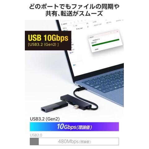 どのポートに接続してもファイルの同期や共有、転送がスムーズです。動画などのデータ転送におすすめです。