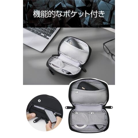 ポーチ内側に、モバイルバッテリーやケーブルなどの小物収納に最適なオープンポケットが付いています。