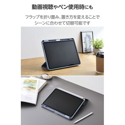 エレコム iPad Air ケース 11インチ ( M3 / M2 ) / 10.9インチ 第5世代 第4世代 用マグネット式フラップ カバー Apple Pencil収納 フリーアングル スタンド オートスリープ機能 衝撃吸収(ブルーグレー) TB-A25MSABG 【返品種別A】