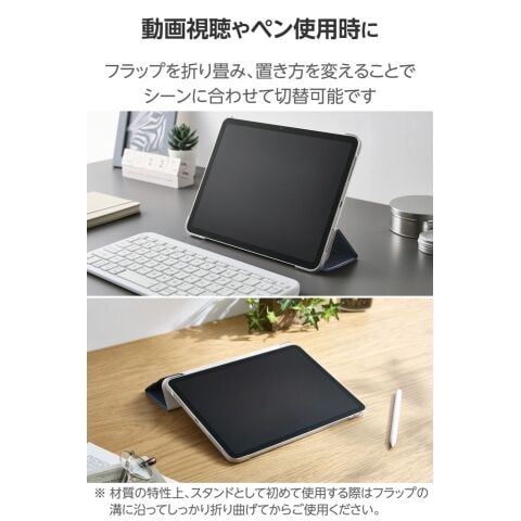 ※開封後スタンドとして初めて使用する際は、フラップの溝に沿ってしっかり折り曲げてからご使用ください。材質の特性上、タブレットを立てにくい場合があります。