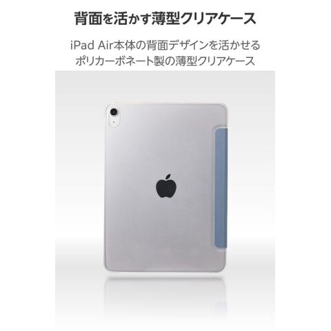 エレコム iPad Air ケース 11インチ ( M3 / M2 ) / 10.9インチ 第5世代 第4世代 用フラップ カバー スタンド オートスリープ機能 軽量 薄型 背面クリア(ブルーグレー) TB-A25MWVBG 【返品種別A】