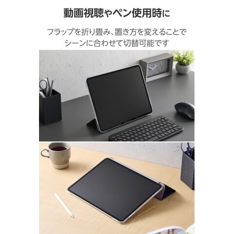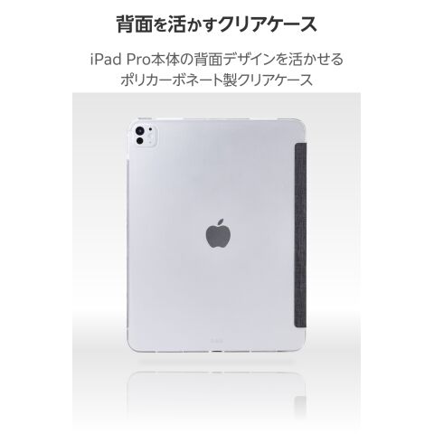 エレコム iPad Pro ケース 13インチ ( M4 ) ファブリックフラップ カバー 2アングル スタンド オートスリープ機能 軽量 薄型 背面クリア(ブラック) TB-A25PLWVCBK 【返品種別A】