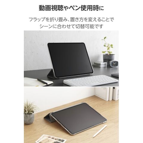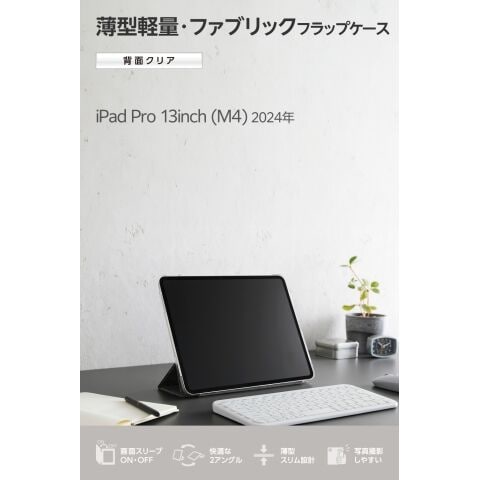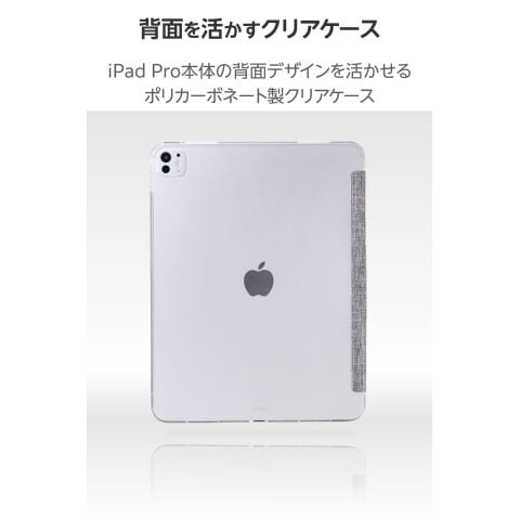 エレコム iPad Pro ケース 13インチ ( M4 ) ファブリックフラップ カバー 2アングル スタンド オートスリープ機能 軽量 薄型 背面クリア(グレー) TB-A25PLWVCGY 【返品種別A】