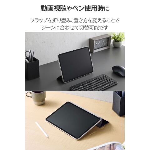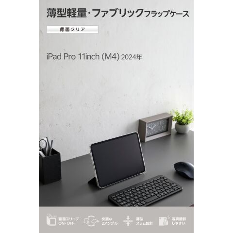 エレコム iPad Pro ケース 11インチ ( M4 ) ファブリックフラップ カバー 2アングル スタンド オートスリープ機能 軽量 薄型 背面クリア(ブラック) TB-A25PMWVCBK 【返品種別A】