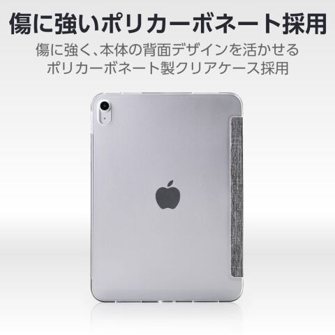 エレコム iPad ケース 11インチ ( A16 ) / 10.9インチ 第10世代 用ファブリックフラップカバー スタンド オートスリープ機能 軽量 薄型 背面クリア(グレー) TB-A25RWVCGY 【返品種別A】