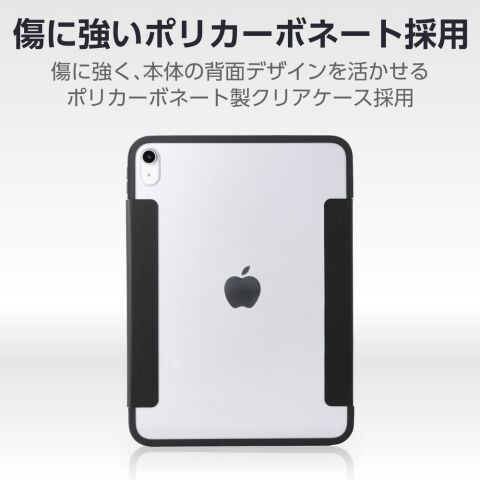エレコム iPad ケース 11インチ ( A16 ) / 10.9インチ 第10世代 用マグネット式フラップカバー スタンド オートスリープ機能 軽量 薄型 耐衝撃 背面クリア(ブラック) TB-A25RWVFCBK 【返品種別A】