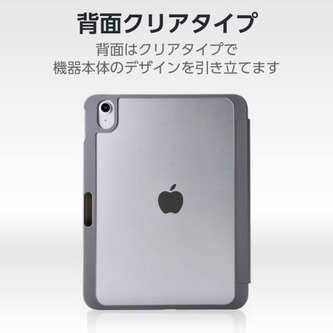エレコム iPad ケース 11インチ ( A16 ) / 10.9インチ 第10世代 用マグネット式フラップカバー Apple Pencil収納 スタンド オート スリープ機能 軽量 薄型 耐衝撃 背面クリア(チャコールグレー) TB-A25RWVJM3GY 【返品種別A】