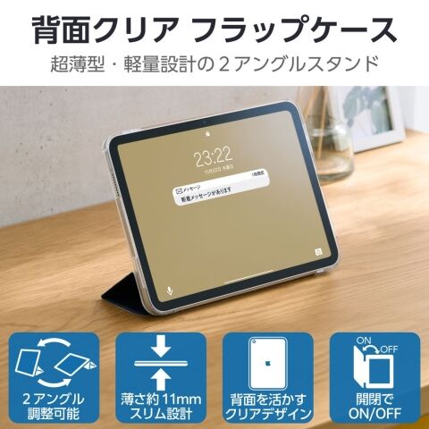 エレコム iPad ケース 11インチ ( A16 ) / 10.9インチ 第10世代 用フラップカバー 2アングル スタンド オートスリープ機能 軽量 薄型 背面クリア(ネイビー) TB-A25RWVNV 【返品種別A】