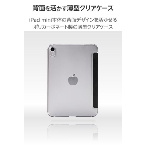 エレコム iPad mini ケース 8.3インチ ( A17 Pro ) / 第6世代 マグネット式フラップ カバー 2アングル スタンド オートスリープ機能 軽量 薄型 背面クリア(ブラック) TB-A25SWVBK 【返品種別A】