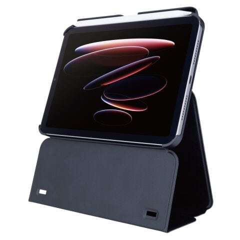 ◆モニターとして使える! 端末を高い位置で固定できるフラップケースです。動画視聴やタイピングなどのシーンに合わせて自由にスタンドの角度を変えられます。