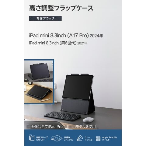 エレコム iPad mini ケース 8.3インチ ( A17 Pro ) / 第6世代 高さ調整フラップ カバー スタンド オートスリープ機能(ブラック) TB-A25SWVH2BK 【返品種別A】