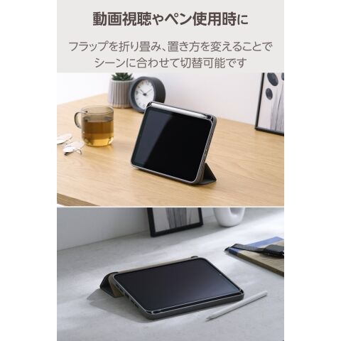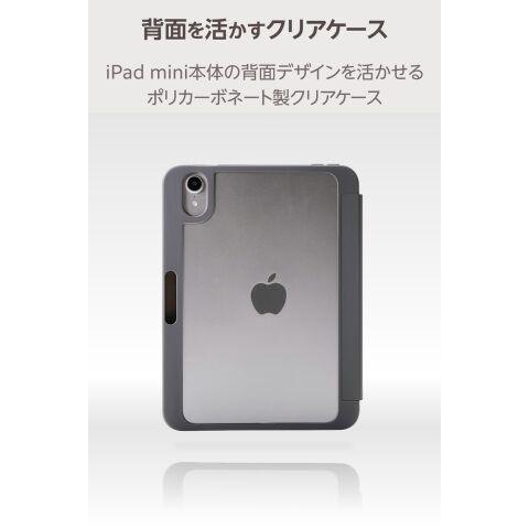 エレコム iPad mini ケース 8.3インチ ( A17 Pro ) / 第6世代 マグネット式フラップ カバー Apple Pencil収納 2アングル スタンド オートスリープ機能 背面クリア(チャコールグレー) TB-A25SWVJM3GY 【返品種別A】