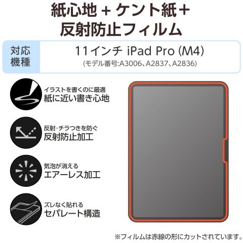 エレコム 11インチ iPad Pro ( M4 ) 2024年 フィルム ケント紙タイプ 紙のような描き心地 アンチグレア 指紋防止 気泡防止 反射防止 マット TB-A25PMFLAPLL 【返品種別A】のレビュー