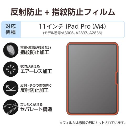 エレコム 11インチ iPad Pro ( M4 ) 2024年 フィルム アンチグレア 指紋防止 気泡防止 反射防止 マット TB-A25PMFLFA 【返品種別A】のレビュー
