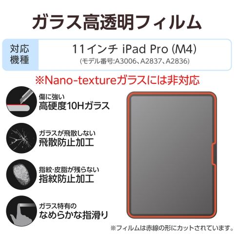 エレコム 11インチ iPad Pro ( M4 ) 2024年 ガラスフィルム 高透明 簡単貼り付けツール付 強化ガラス 10H 指紋防止 気泡防止 TB-A25PMFLGGT 【返品種別A】