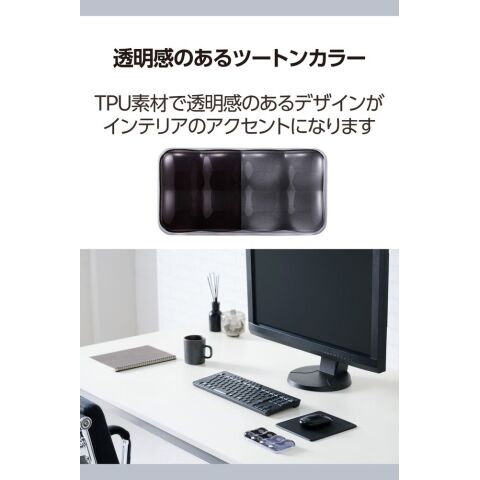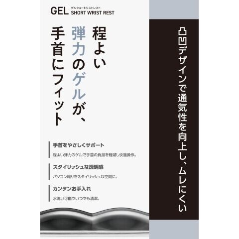 ツートンカラーでデスク周りをスタイリッシュに演出。程よい弾力で手首をやさしくサポートする、リストレストショートです。