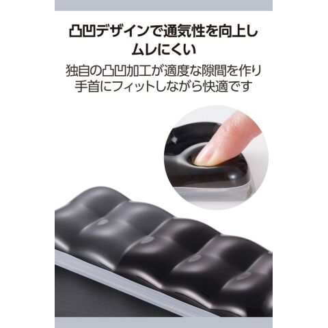 エレコム社独自の凸凹形状で通気性がよく、長時間使ってもムレにくい仕様。