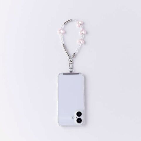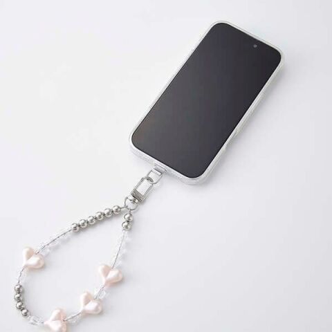 不規則に散りばめられたハートチャームが、ほどよい甘さと抜け感を演出するハンドストラップ