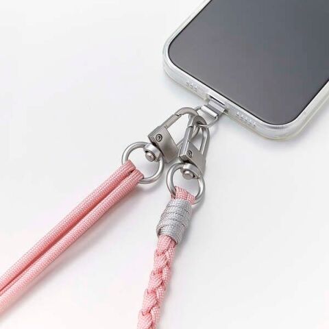 エレコム スマホショルダーストラップ 編みロープタイプ 長さ調整可 ストラップホルダーシート付 iPhone/Android対応 落下防止(ピンク) P-STSDH1KNPN 【返品種別A】
