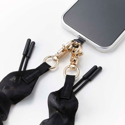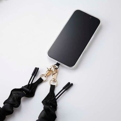 エレコム ショルダーストラップシュシュ/上品 軽量 長さ調整可 ストラップホルダーシート付 iPhone/Android対応 落下防止(ブラック) P-STSDH1SCEBK 【返品種別A】