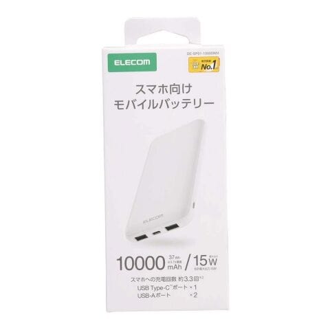 エレコム モバイルバッテリー 10000mAh 大容量 薄型 軽量 USB-C USB-A iPhone Android対応 PSE適合(ホワイト) DE-SP01-10000WH 【返品種別A】
