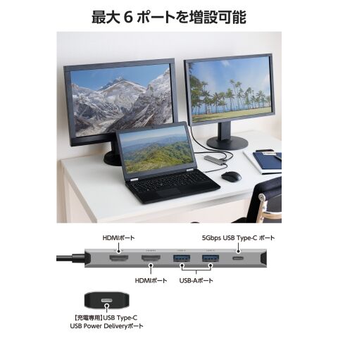 ◆USB Type-C(TM)ポート搭載パソコンに6ポートを増設できるドッキングステーション