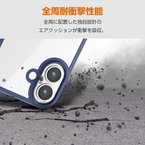 エレコム iPhone17 ハイブリッドケース D3O フレームカラー メタルステッカー付(ネイビー) PM-A25AD3OFCNV 【返品種別A】