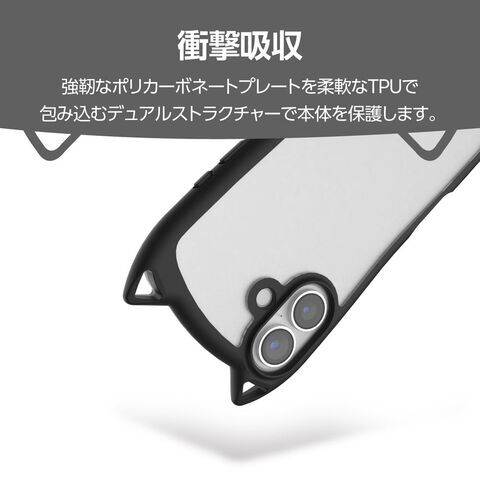 ◆猫耳型のアクセントが可愛らしく、背面のクリアパネルで端末本来のカラーを活かしながら、遊び心と実用性を兼ね備えたハイブリッドケースです。