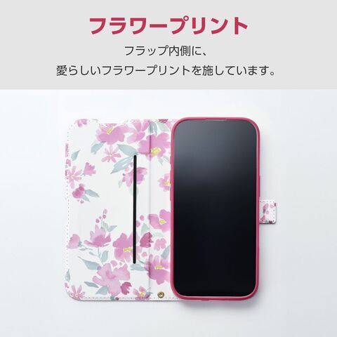 エレコム iPhone17 手帳型ケース 薄型 磁石付 フラワーズ(ディープピンク) PM-A25APLFUJPND 【返品種別A】
