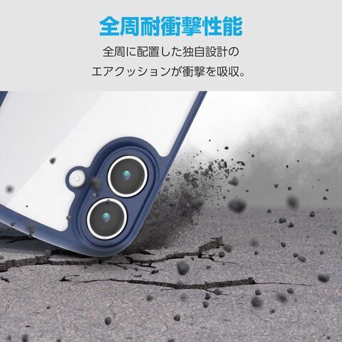 エレコム iPhone17 TOUGH SLIM LITE ケース フレームカラー 極限 メタルステッカー付(ネイビー) PM-A25ATSLFCKNV 【返品種別A】