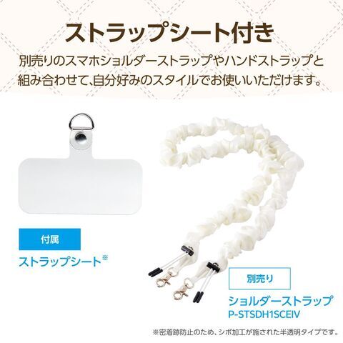 ◆ショルダーストラップやハンドストラップが取り付けられる、ストラップホールシート(1つ穴・半透明タイプ)が付属しています。