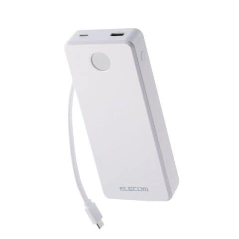 エレコム モバイルバッテリー 20000mAh 67W充電 ケーブル一体型 ノートPC対応 大容量 残量表示 PSE適合 旅行/出張/防災(ホワイト) DE-C77-20000WH 【返品種別A】