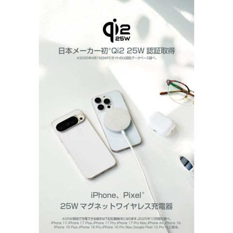 - 認証規格:Qi2 25W(MPP)