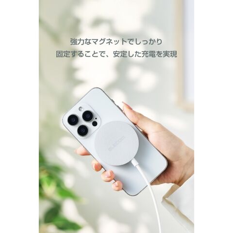 マグネットで対応するスマートフォンに固定するだけで高速充電できる、Qi2 25W規格対応のワイヤレス充電器です。