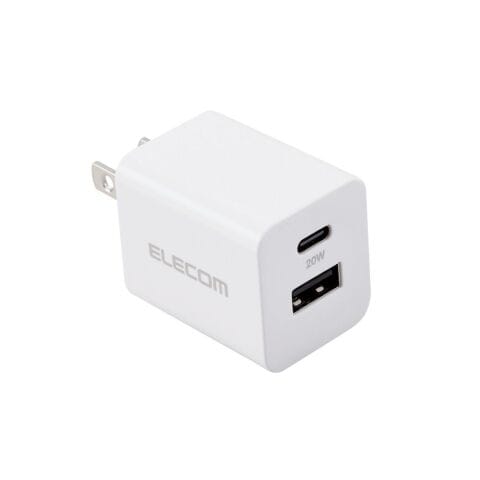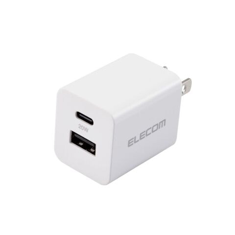 エレコム 充電器 USB Type-C 20W PD対応 2ポート USB-C USB-A コンセント iPhone iPad Android 各種対応 PSE適合 折りたたみ式プラグ(ホワイト) MPA-AC12020WH 【返品種別A】