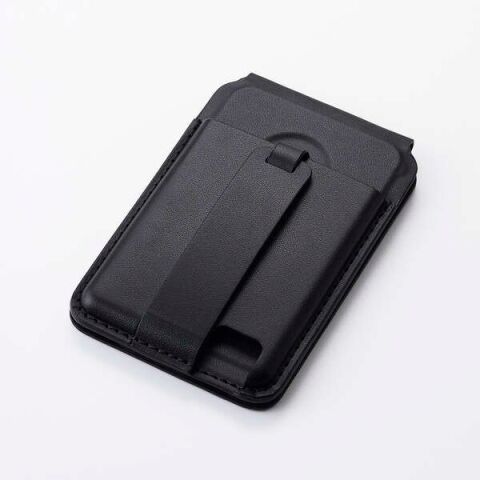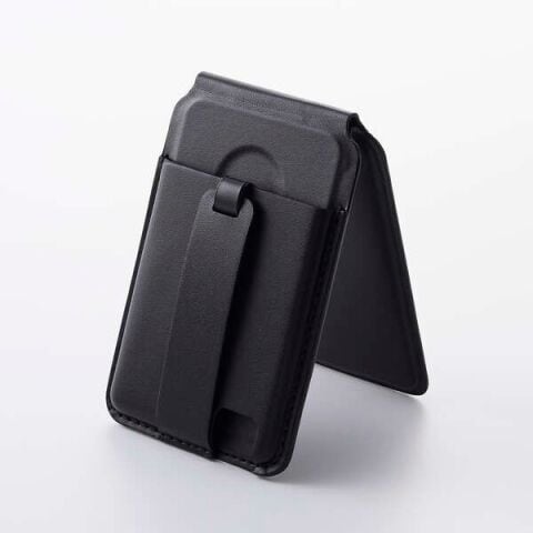 エレコム MagSafe カードケース スタンド iPhone用 磁気防止シート付 3枚収納 マット素材 バンド付 MAGKEEP(ブラック) AMS-MAGCSBBK 【返品種別A】