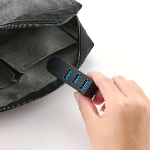 隣のポートをふさがず、手元すっきり。USB 5Gbps(USB3.2(Gen1))に対応したUSB Type-C(TM)プラグと3つのUSB-Aポートを搭載したUSBハブ