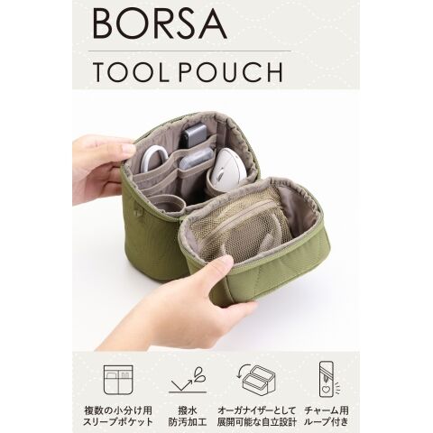 デスク上で道具入れとして使える、スタンドタイプのツールポーチ