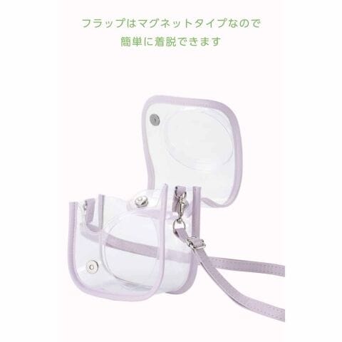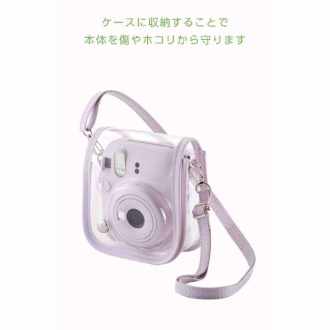 クリアタイプで、チェキ本体のカラーを活かしながら可愛く持ち運べます。