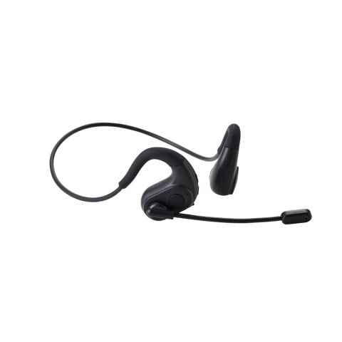耳をふさがないオープン設計で、周囲の音も聞こえるオープンイヤー型ネックバンド式のBluetoothヘッドセットです。