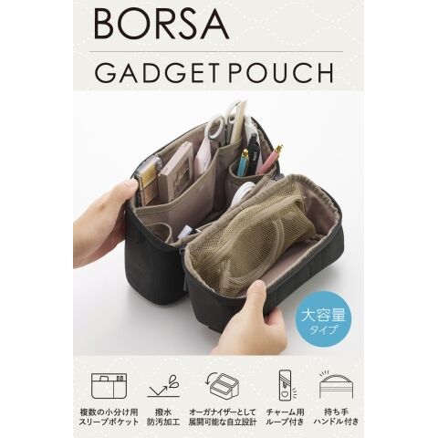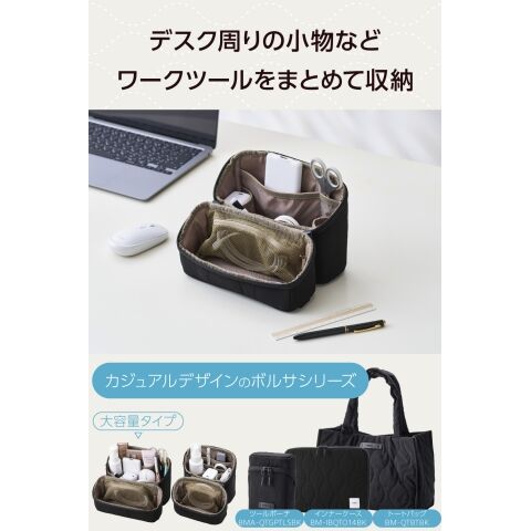 ◆デスク周りの小物やガジェット、筆記用具などのワークツールをまとめてスッキリ収納! たっぷり入る大容量タイプで、デスク上で道具入れとして使える、スタンドタイプのツールポーチです。