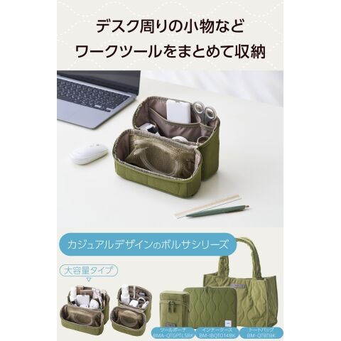 エレコム ガジェットポーチ 大容量 自立型 ハンドル付き トラベルポーチ 撥水 キルティング デスクオーガナイザー 収納ケース 小物入れ(カーキ) BMA-QTGPSGN 【返品種別A】のレビュー