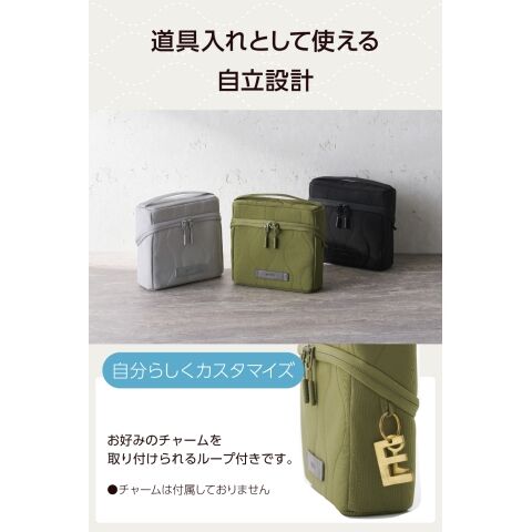 デスク周りの小物やガジェット、筆記用具などのワークツールをまとめてスッキリ収納! たっぷり入る大容量タイプで、デスク上で道具入れとして使える、スタンドタイプのツールポーチです。