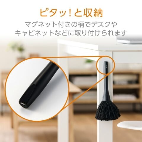 マグネット付きでピタッ! と取り付けて収納できる、画面やOA機器の掃除に便利なクリーニングブラシ